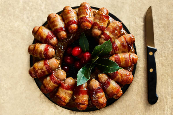 The Collection British Outdoor-Bred Pigs in Blankets, Pork & Chestnut Stuffing Wreath (Serves 8)